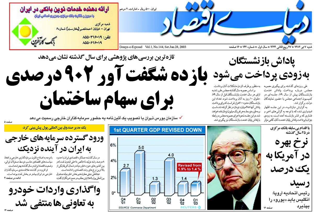 نسخه کامل شماره روز سهشنبه روزنامه دنیای اقتصاد را اینجا بخوانید